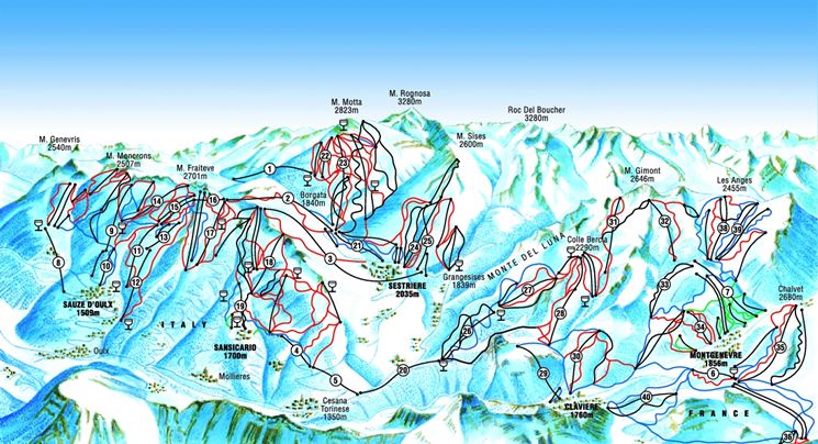 Una vacanza sulla neve a Claviere è ideale anche per chi pratica lo snowboard. A disposizione ci sono 300 chilometri di piste di diverse difficoltà per sciatori e snowboarder più o meno esperti, con i relativi impianti di risalita. Le seggiovie conducono fino alle piste più alte, superando la quota dei 2200 metri. Tutti i servizi sono illustrati su cartine e tabelle che mostrano anche i gradi di difficoltà delle piste per evitare brutte sorprese. Inoltre, è comodamente raggiungibile la vicina Montgenèvre. E' una località turistica in territorio francese, dalla quale si rientra poi in Italia percorrendo la pista del Colletto Verde, che premia chi la affronta, dato che è molto impegnativa, con scorci e panorami mozzafiato. La zona è disseminata anche da fortificazioni che raccontano la presenza dell'uomo anche sulle vette più inospitali. Sul monte Charberton si possono ancora visitare le rovine di una fortificazione italiana.